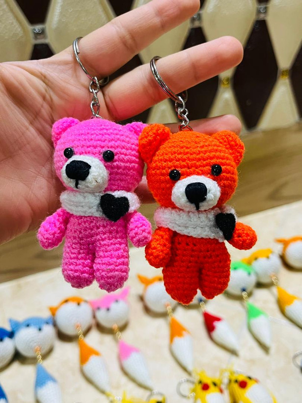 دم کلیدی،آویزماشین،سرمدادی بافتنی رنگین کمان مدل حیوانات دستبافت